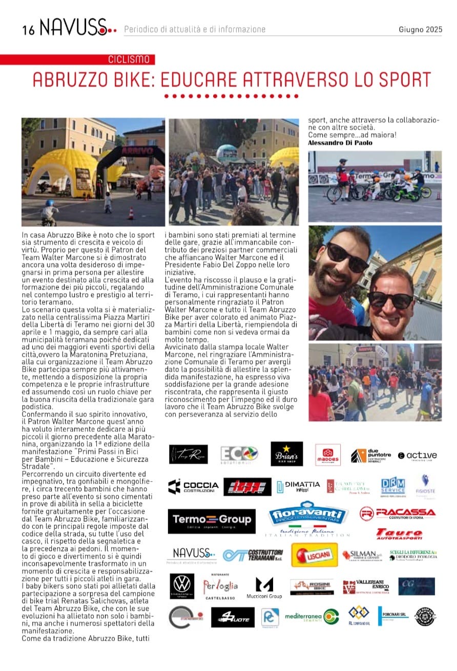 ABRUZZO BIKE: EDUCARE ATTRAVERSO LO SPORT Scritto il 1 Giugno 2025 Pubblicato inEventi , News , Rassegna stampa teamabruzzobike